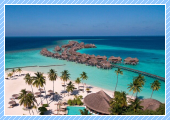 美しいラグーンが広がるハネムーンに人気のリゾートで、食事が3食共にアラカルト。客室は水上タイプがメインで、バスルームの大きな窓から海を眺めることが出来ます。