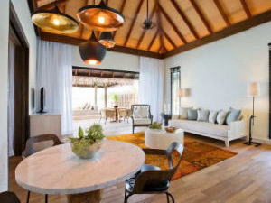 水上のお部屋の前に広がるインド洋の青い海の景色は、お客様だけのものです。 |