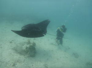 人を恐れず寄ってくるマンタ、カメ、サメ、マグロやアジやバラクーダの群れなど、大物を沢山見ることができました。