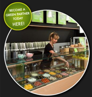 お店の名前は、「サラダバー グリーン イズ ベター」 エスカレーターを上がってすぐ横にあり緑の看板が目印。