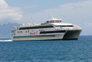 左の写真はパペーテ港とモーレア島を1日5往復程度結んでいるアレミティの写真です。(片道約30分) |