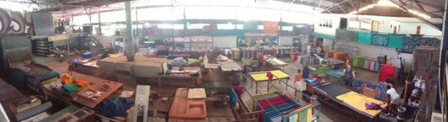 パペーテ市内から徒歩で訪れることが出来る距離ではありませんが、車で行きたいというニーズに合った駐車場があり、店内はいつも賑わっています。 本日は許可を得てパレオの工場を見学します。 |