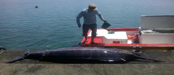 獲れた魚は、カジキマグロです。