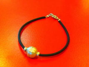 真珠のブレスレットでも、革紐に真珠が一粒付いたカジュアルなタイプが一番人気だそうです。