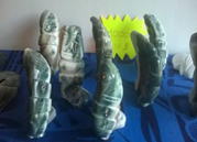 これを元に作られた装飾品、ランプシェード、キーホルダーはマルシェでも見かけますが、ティキ像にしてしまうというアイデアに驚きました。