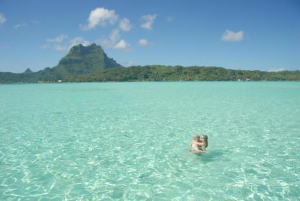 プロカメラマンがキャプテンとなり、ボラボラ島の最高の景色スポットへご案内のうえ、素敵な写真を撮影するフォトラグーンツアー。