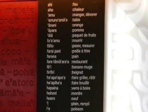 バー入口横の黒い壁にはフランス語で答えも記載されているので、いくつか気に入った単語を覚えてタヒチのご滞在中に使ってみてはいかがでしょうか。