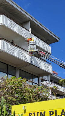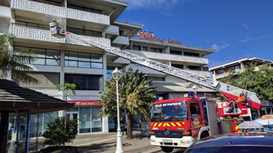 先日、タヒチヌイトラベルのオフィスがあるパペーテ市内のバイマショッピングセンターで消防訓練が行われました。