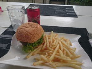 モーレア島からタヒチ島へのご出発前に、ハンバーガーはいかがでしょうか。 |