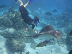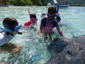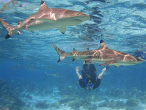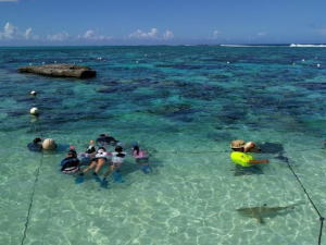 まずは足が着く浅瀬で、サメやエイとご対面。