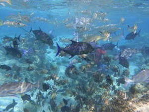 モーレア島でもボラボラ島でも、これほど多くの魚をシュノーケリングで見れる場所は珍しいのでは。