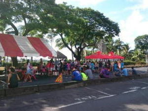 ところが先日、4月08日の日曜日はポマレ大通りを通行止めにして市民に開放していたので、大勢の人で賑わっていました。