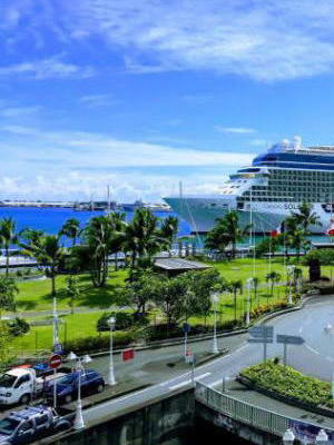 時々用事でパペーテを訪れたり、車で通り抜けることがありますが、最近はクルーズ船を見かけます。