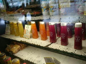 ベースはパイナップル&オレンジ、パイナップル&ナシ、リンゴ&スイカの3種類があり、そこに果物以外にもカボチャやキュウリ、レモン、ジンジャーなどが入っている、100%のジュースです。