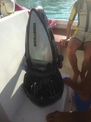ソフィテルモーレアからボートに乗って、シースクーター・シュノーケリングガイドツアーの出発です。