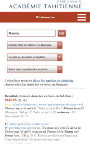 また、タヒチ語からタヒチ語の意味を確認することも可能で、単語の意味を忘れてしまった時に、手軽に調べることも出来ます。