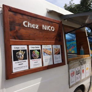 シェ・ニコの場所は、パヒアショッピングセンターの並び、教会の前あたりの広場にあります。