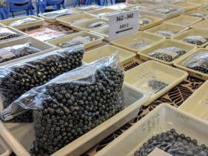会場内に入ると、オークションにかけられる黒真珠が所狭しと並んでおり、その数なんと32万! |