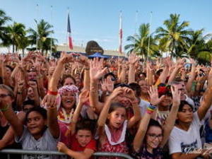 左の写真は、ミス・フランス2019に輝いた、ミス・タヒチの帰国パレードの様子です。