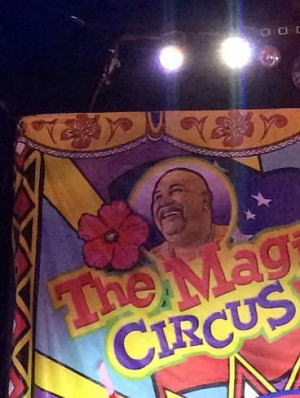 目の前に登場したサーカスの団長は、看板にある絵よりも大きかったです。