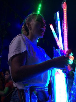少し驚いたのは、先ほどまでサーカスで演技をしていた人が、光るライトを売る販売員になったり、マジシャンが証明係になったり。