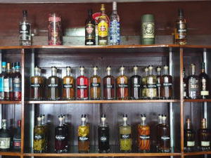 1つ目は、季節毎に変わる18種の自家製アレンジラム酒(コーヒーやシナモンの香りなど)