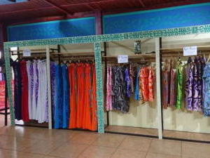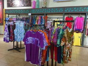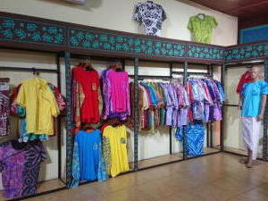 併設の工場で作成したパレオやローブ、Tシャツ、アロハのコレクションが販売されていて、沢山のローカルも自分用がプレゼント用に買い物に訪れています。 |