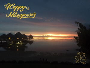タヒチ島では新年を迎えると同時に花火が上がり、暗い夜空に色鮮やかに瞬き煌めいて、とても綺麗でした。